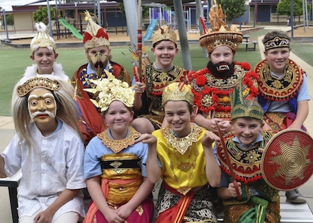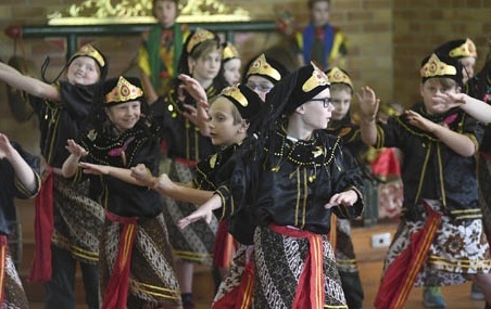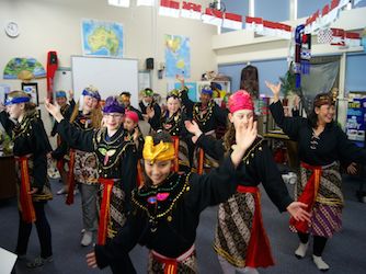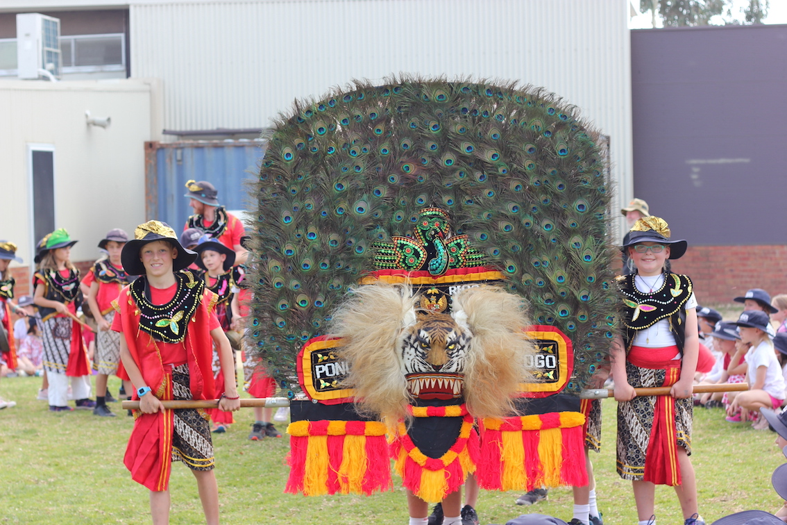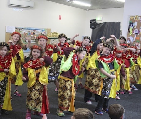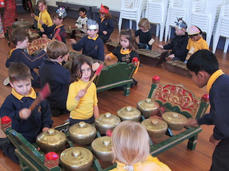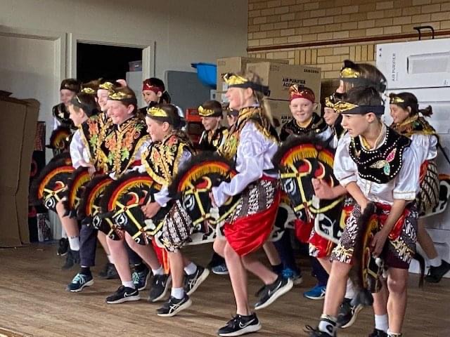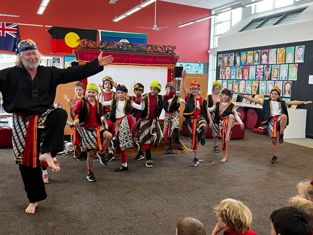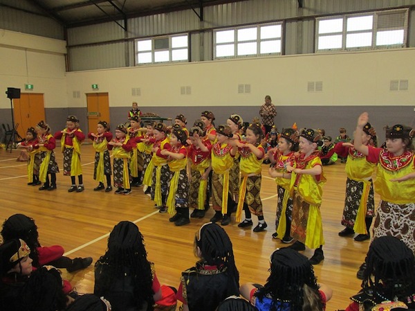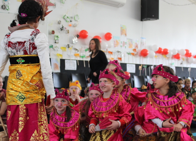 A popular format for the day is to run 45 min. (sometimes less for Junior Primary) workshops in the morning followed by a performance in the afternoon. The performance often starts with a Shadow puppet performance by Aaron. Then it's time for the students to perform. The students perform their gamelan piece and dances studied earlier in their workshops (students in full dance costume). Lately the final performance has often been of the form of a dance drama by using a story indispersed with dances and gamelan. See above in the dance section for more details. Parents are often invited to the final performance to watch their children perform their dance or gamelan. An ideal way to finish off a successful Indonesian day.