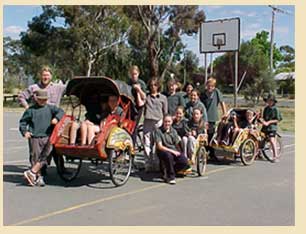 Shadow puppet performance on the same day as workshops costs an extra $300.00, + $1.70 per student over 200 students. Becak hire is $190.00 per day.