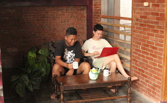Located in the quiet suburb of Depokan, Kota Gede, 5 km. east of the city centre. It is an easy 20 min ride to the centre of town. Located on a laneway 30m from a bitumen road.