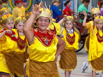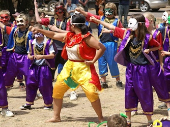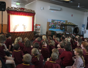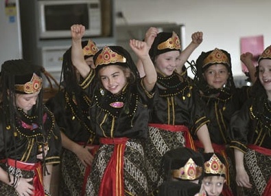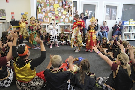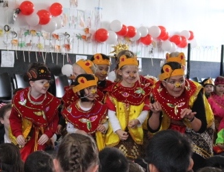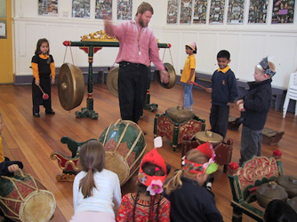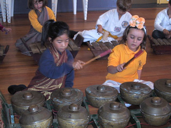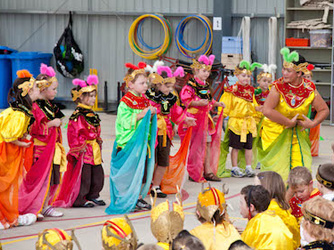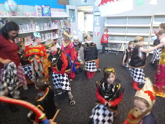 A popular format for the day is to run 45 min. (sometimes less for Junior Primary) workshops in the morning followed by a performance in the afternoon. The performance often starts with a Shadow puppet performance by Aaron. Then it's time for the students to perform. The students perform their gamelan piece and dances studied earlier in their workshops (students in full dance costume). Lately the final performance has often been of the form of a dance drama by using a story indispersed with dances and gamelan. See above in the dance section for more details. Parents are often invited to the final performance to watch their children perform their dance or gamelan. An ideal way to finish off a successful Indonesian day.